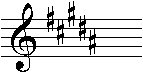 ![]() Do# M - La# m 7 diesis (Fa, Do, Sol, Re, La, Mi, Si) |