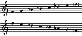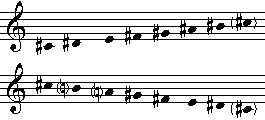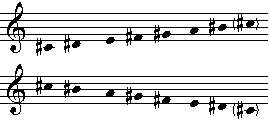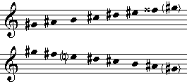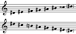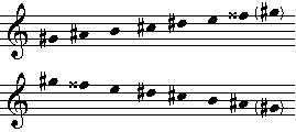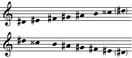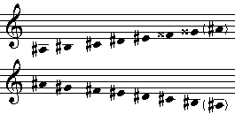 ![]() Fa# M - Re# m 6 diesis (Fa, Do, Sol, Re, La, Mi) |