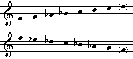 ![]() La M - Fa# m 3 diesis (Fa, Do, Sol) |