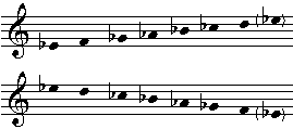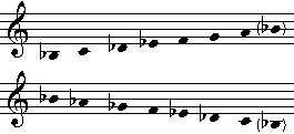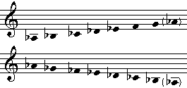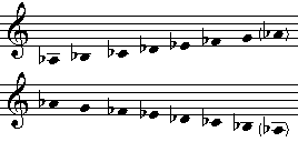![]() Dob M - Lab m [Si M - Sol# m] 7 bemolli (Si, Mi, La, Re, Sol, Do, Fa) |