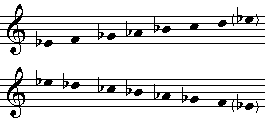 ![]() Mib M - Do m 3 bemolli (Si, Mi, La) |