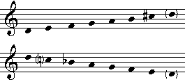 ![]() Re M - Si m 2 diesis (Fa, Do) |