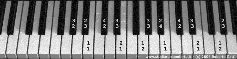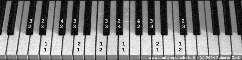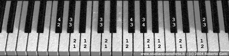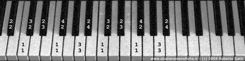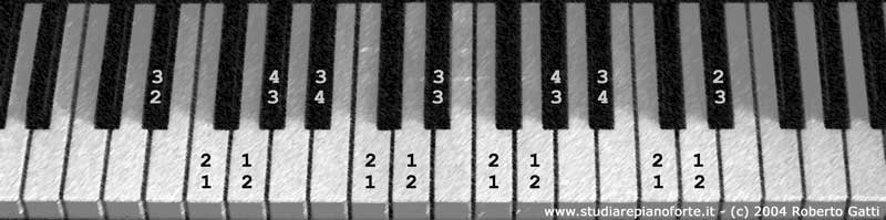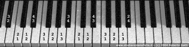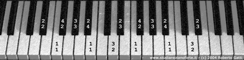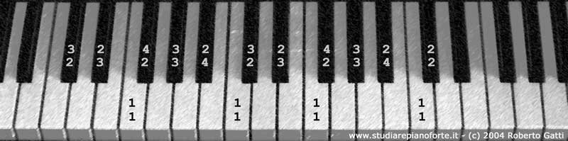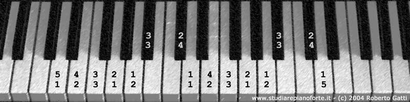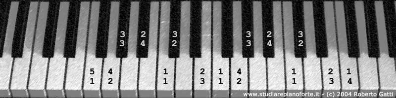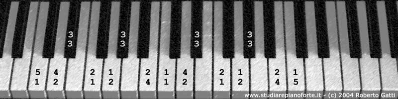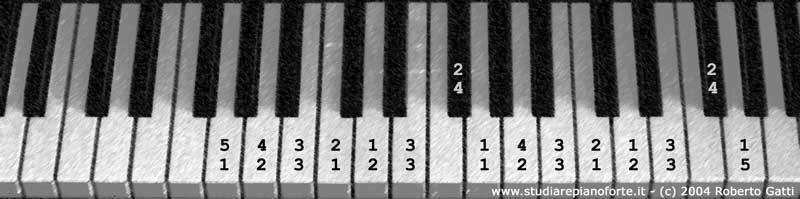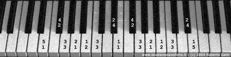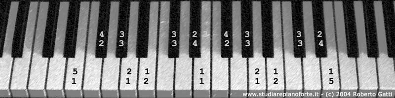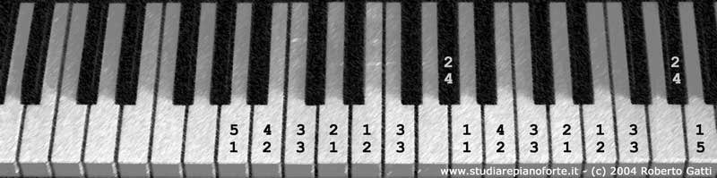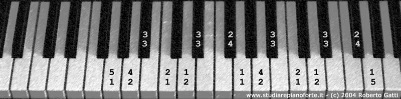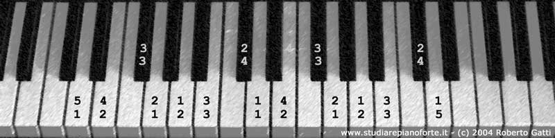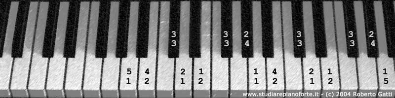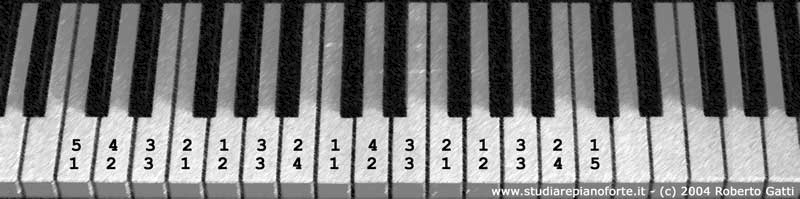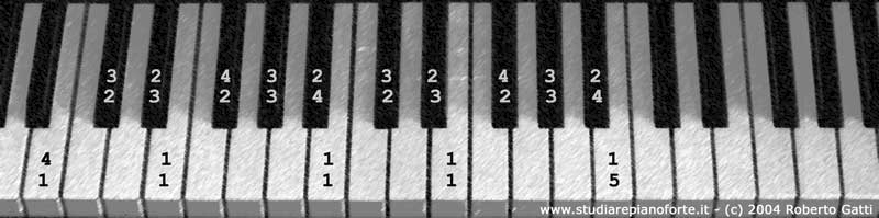 I numeri corrispondono alle dita: 1 = pollice, 2 = indice, 3 = medio, 4 = anulare, 5 = mignolo.